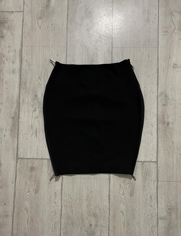 Стильная юбка с металлической молнией по бокам. Ткань плотная и емкая. Размер S. Стан - идеальный. Замеры: пояс 33, поб 43, длина 47