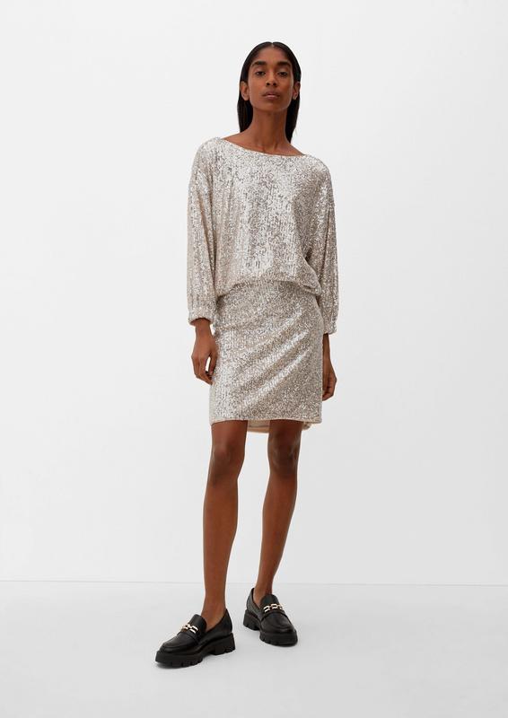 Крутейшая юбка из расшитой пайетками ткани высокого качества из премиальной линейки Black Label от немецкого бренда s.Oliver. Застежка на потайную молнию сзади. Внутри мягкая и очень приятная подкладка из 100% вискозы. Верхняя ткань тянется. Указан европейский размер 38. Замеры: ПОТ 38 см ПОБ 49 см Длина 49 см Состав: 95% полиэстер, 5% эластан; подкладка: 100% вискоза. Первоначальная стоимость 79,99 €.