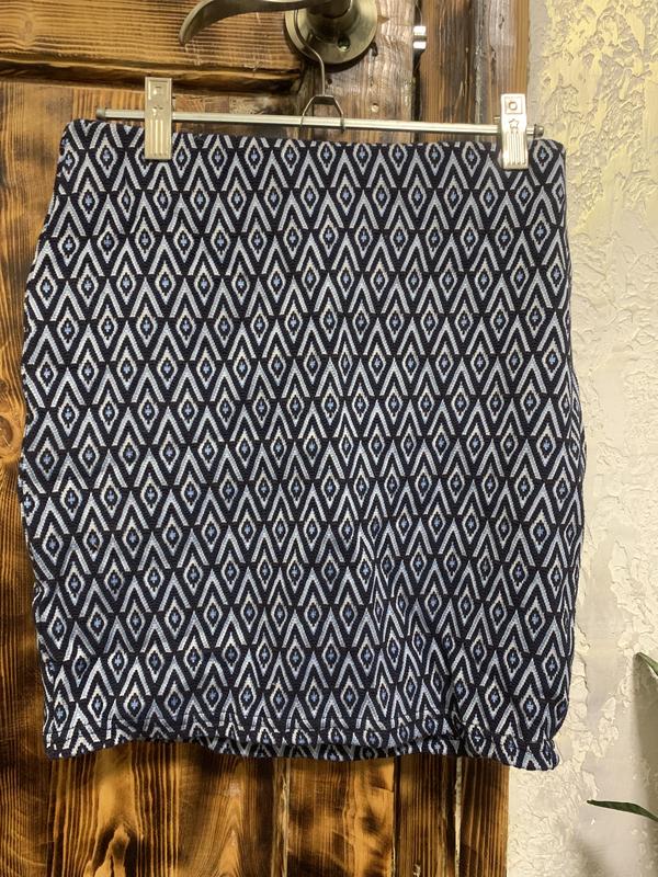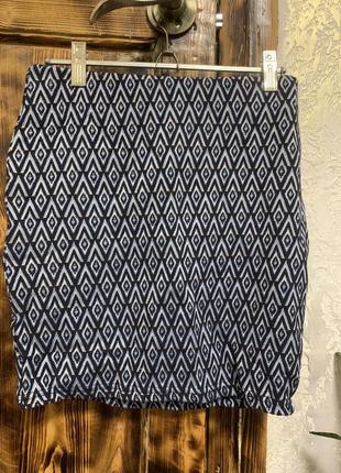 Юбка в ромбик, в голубых оттенках, красиво тянется, размер s