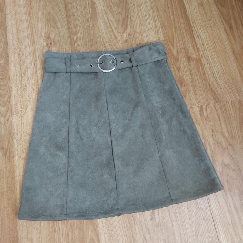Спідниці від Cropp, колір хакі. Міні матеріал замша Розмір М; Заміри: Напівобхват талії- 37 см; Напівобхват бедер - 46 см; В ідеальному стані: 150 грн