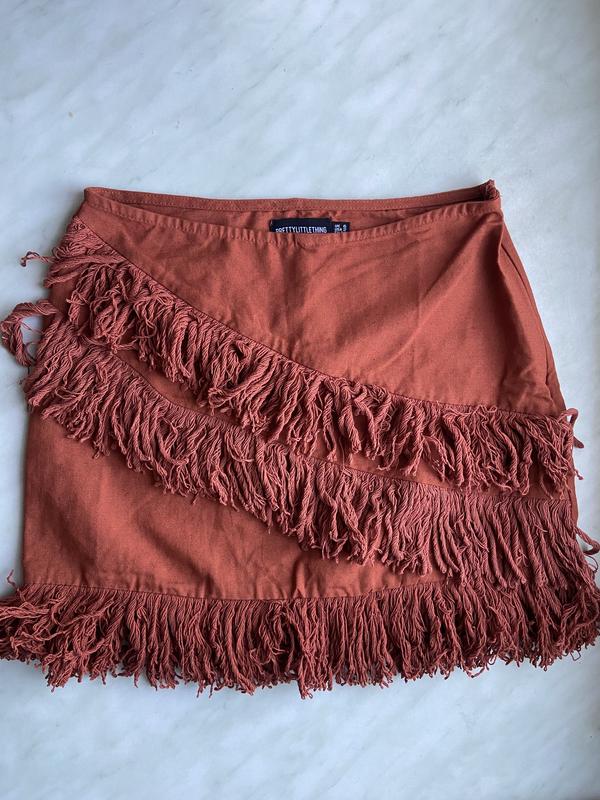 Юбка женская с бахромой. Цвет: коричневый. Не подходит размер(новая). Прзмер: xs. Бренд : PLT Замеры: Длина 30 см (с бахромой 36 см) ПОТ 34 см. ПОБ 41 см. Имеет сбоку спрятанную застежку. Ткань : вискоза 85%, flax 15 %. Будут дополнительно вопросы, убедитесь ☺️ Также в подарок можно выбрать 1 бесплатную вещь (из существующих). Смотрите и другие вещи)