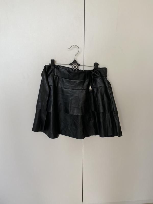 Мини юбка с зам кожи, с поясом.