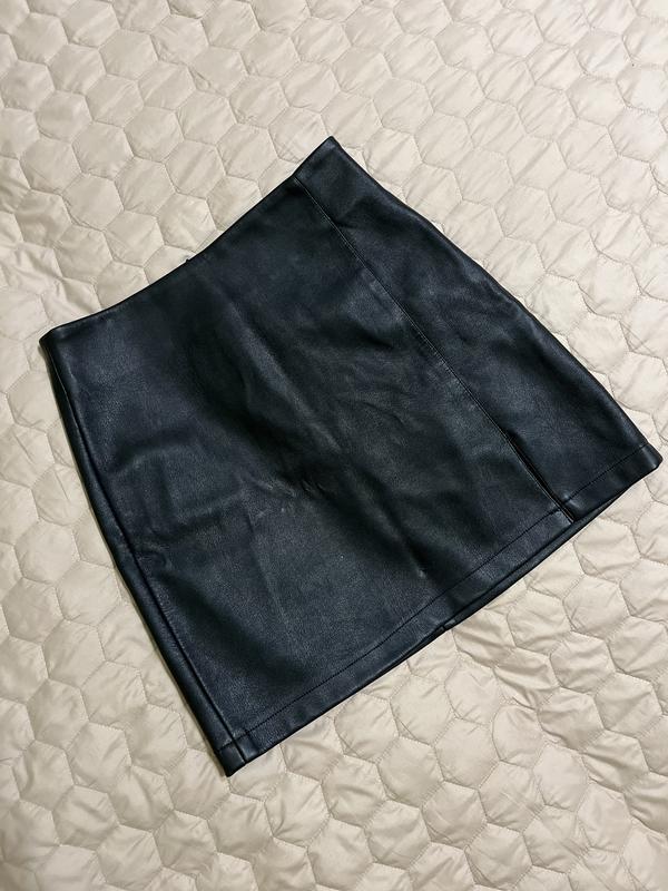Юбка из экокожи с актуальным разрезом Размер S-M ОТ - 32 см ОБ - 40 см Длина - 39,5 см Есть небольшие дефект, указанный на фотографии, в носке не заметен