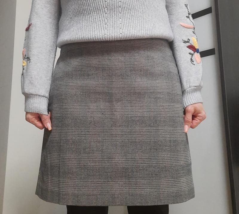 Тканина на дотик м'яка приємна, є підкладка, тому не буде приліпати до колготок. Застібається позаду на блискавку. Сірий базовий колір. На заявлений розмір 38 буде, але можна і 40. Орієнтуйтесь по замірах на фото. На мій зріст 160см сідає як на фото Будь ласка, мінімальна сума до замовлення не менше 100 грн