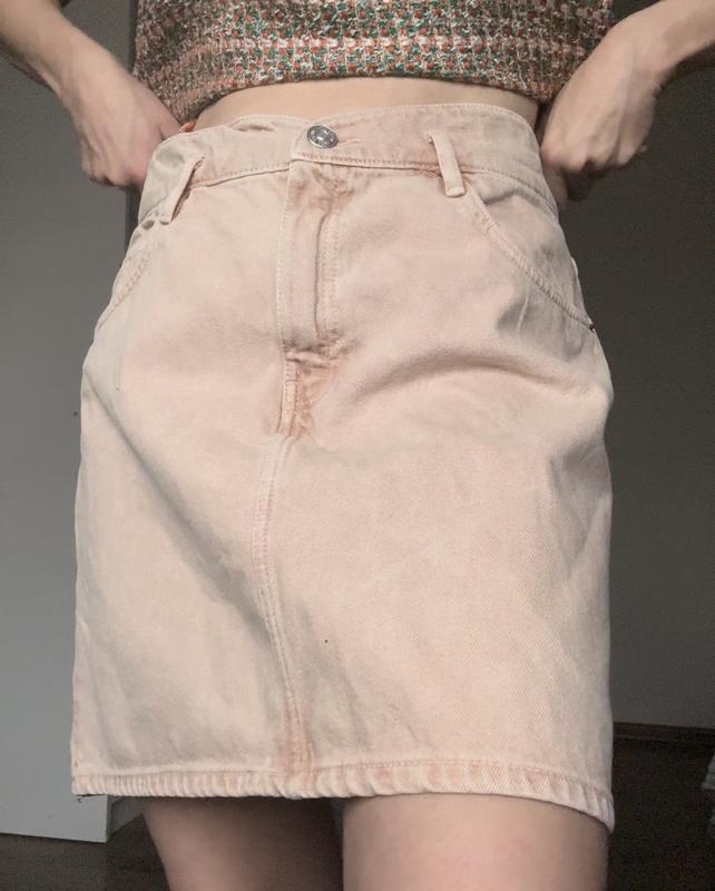Крутая,джинсовая юбочка с эффектом вываренности.Высокая посадка в нежном,персиковом оттенке. ПОТ 42 ПОБ 52 Длина 48