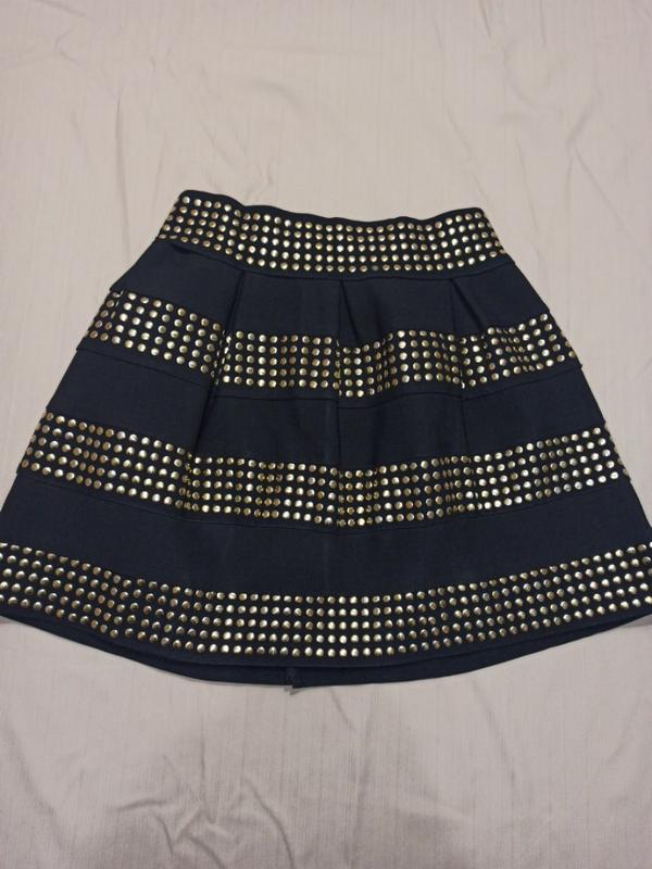 Пилотный стрейч, приклеенные золотые пайетки, нужно прошить пояс, пот 29 см., поб 46-49 см, длина изделия 37 см