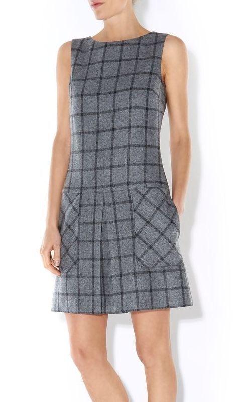 Платье с твидовой подкладкой hobbs grey со смесью шерсти плиссированное в клетку с твидово...