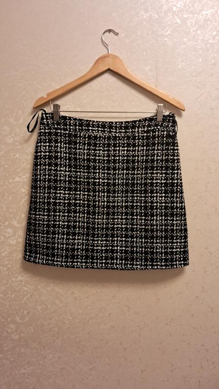 В идеальном состоянии юбка черно-белая как будто клетка на подкладке размвр 12(s-m) длина 44 см обх ьедра 50 см пояс 40 см