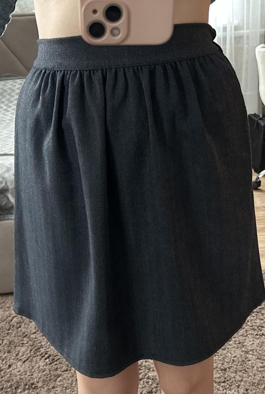 Спідниця кльошна, взаді резинка для комфортного носіння, спідничка у ледь помітну смужку, можу бути як шкільна форма