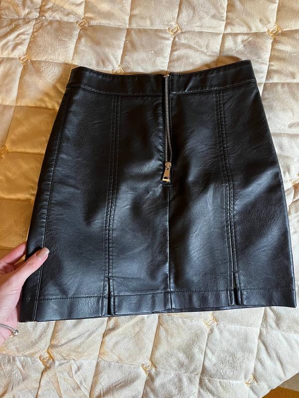 Женская юбка из эко-кожи, с разрезами спереди, классно садится по фигуре Больше фото в привод