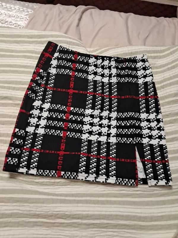 Shein крутая мини юбка с распоркой на резинке Длина - 39 см Пот - 33 см (тягнеться гумка до 51 Размер 40/L