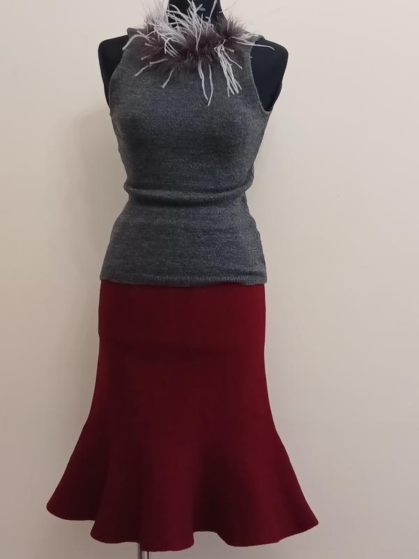 невероятное качество шерсти и кроя, красивый цвет в 2 нити.Талия 32-34,стена40-42, длина 63.