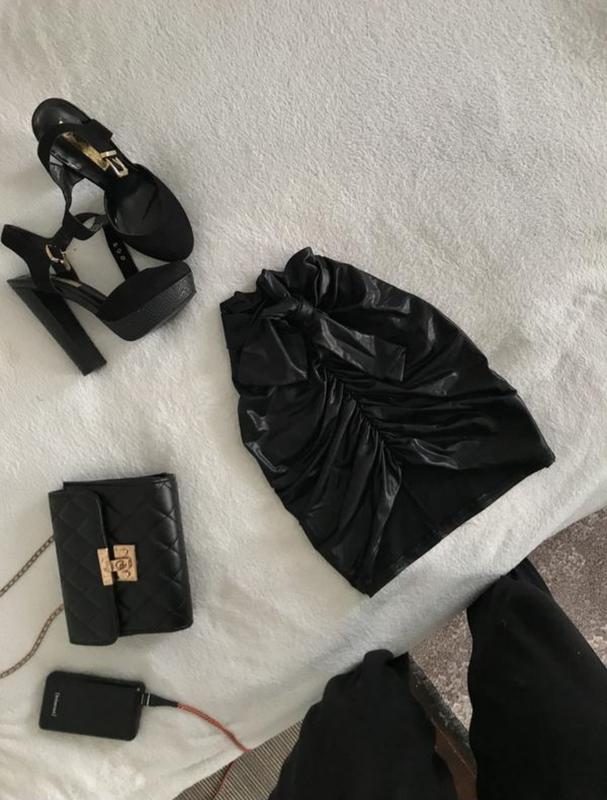 Юбка мини черная с пуш апом, кожзам код товара 266