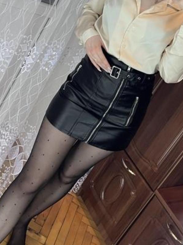 Мини-юбка кожаная с ремнем Цвет - черный Размер - с-маленькая м