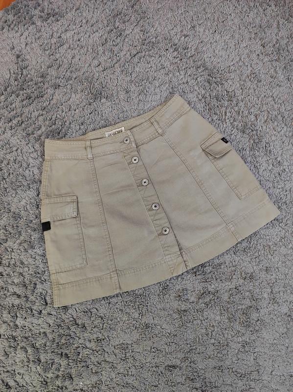 дуже стильна, лежить 🔥 облягаюче, розмір L, стан ідеальний, спереду на гудзиках, розщипається, по боках 2 карго кишені(глибокі), колір бежевий хакі