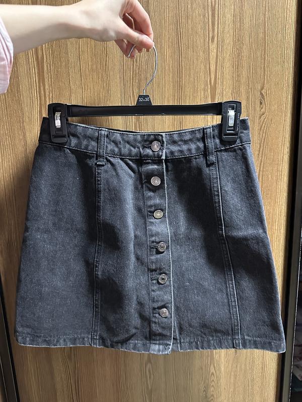 Черная джинсы, юбка с пуговицами