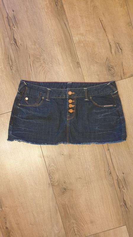Джинсовая мини юбка Superdry из плотного денима темно-синего цвета. Брендированная фурнитура. Размер 32. Стан идеален. Замеры: п/о талии 45 см, бедер 55 см, длина спереди 26 см, сзади 29 см. Практично не тянется.