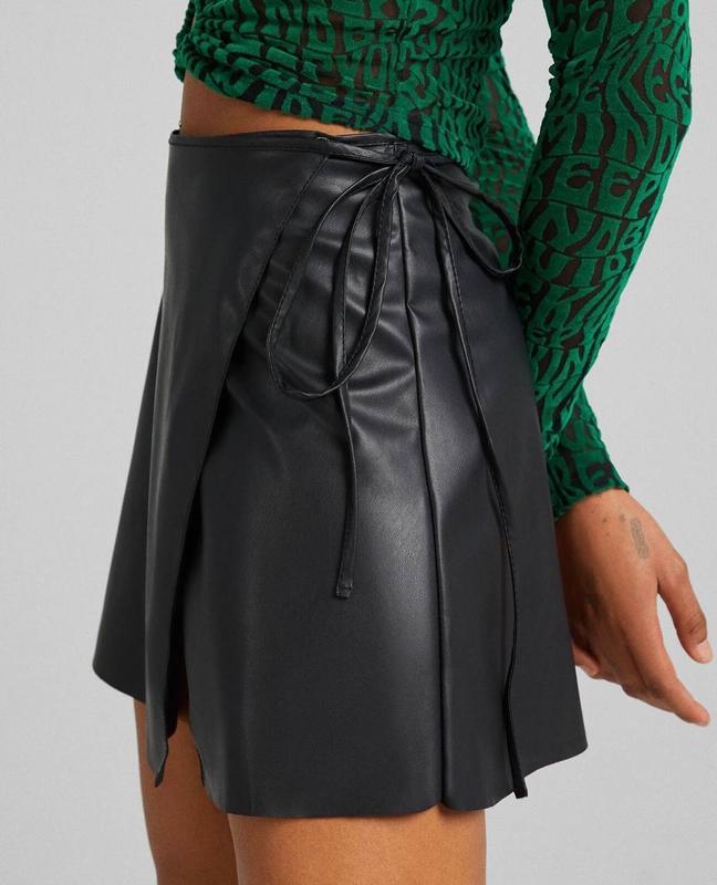 В наличии также аналогичная юбка в молочном цвете Состав: 100% полиэстер Размер хс, на завязках на запах Длина 38 см, талия до 60 см