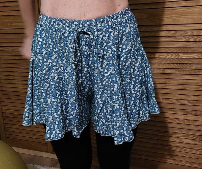Італійська літня спідничка шорти з віскози в дрібний квітковий принт. Пояс на резинці, зав'язки для декору. ПОТ 32, довжина 37см.