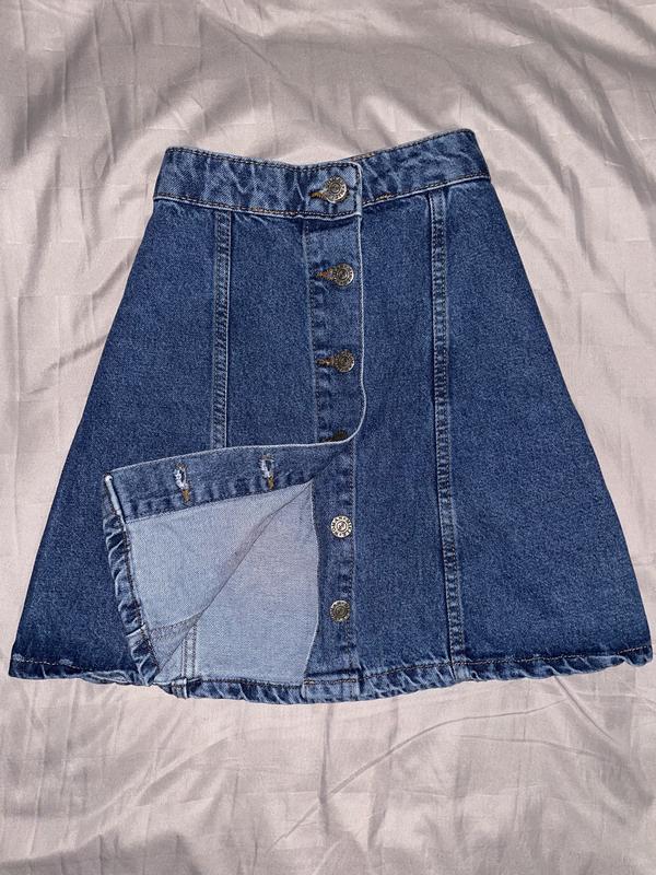 Дуже стильна жіноча спідниця, в темно-синьому кольорі. Йде на ґудзиках, підійде під будь-який образ. Стильна модель. Розмір - 34
