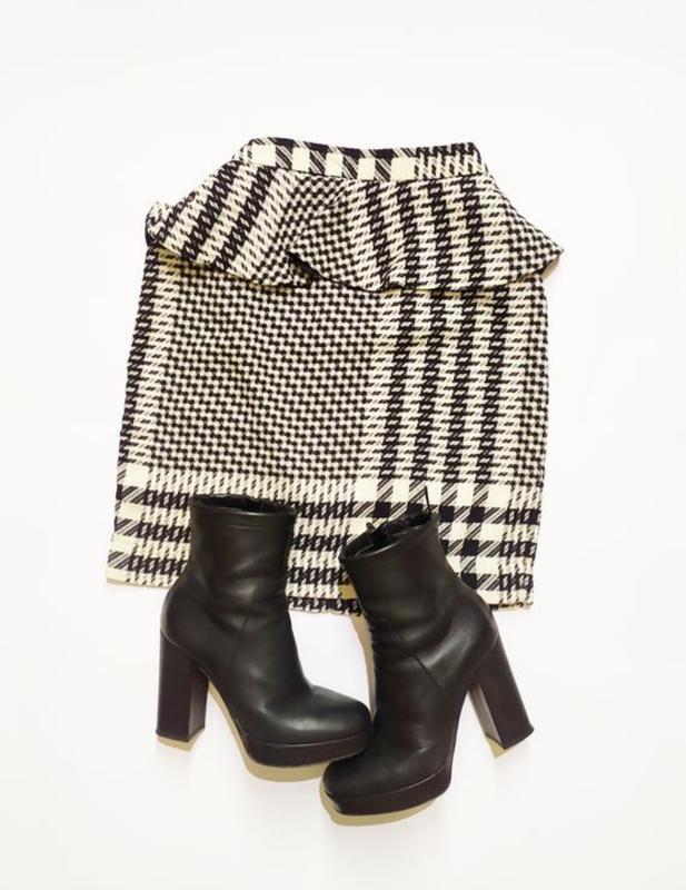 Женская юбка-карандаш Zara с баской размер: S/M цвет: Черно-белая гусиной лапкой