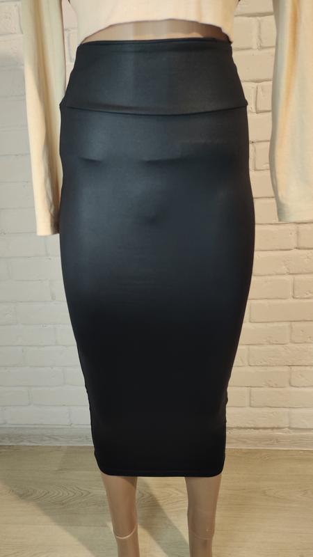 Черная облегающая юбка-миди, из эластичной ткани. Цвет классический черный, длина миди – универсальная для любого образа, посадка высокая, с широким поясом для идеальной фиксации, облегающий крой, подчеркивающий фигуру. Идеальный выбор для офиса, вечернего выхода или повседневного стиля! В идеальном состоянии, размер европейский 8. Замеры НПО талии 35-43 см., НПО бедер 39-50 см., длина 76 см.
