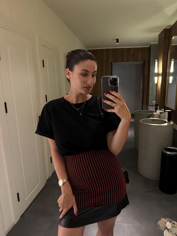 Юбка из материала, который очень классно прячет живот (на фото я беременна). Стан 10/10.