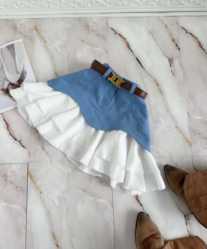 ⬆️ФОТО⬆️ Юбка Мод: 433 мр ▪️Размер: 42-44 и 46-48 ▪️Ткань: верх-плотный джинс турецкий, воланы-креп шифон ▪️Цвет: черный, голубой и беж Юбка с имитацией баски. ФОТО РЕАЛ 850 грн🌹