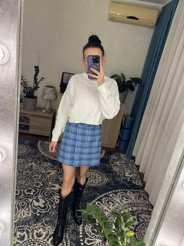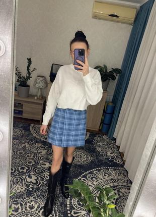 Классная мягкая юбочка в клетку на запах, талия регулируется. Цвет - голубой Размер xs-s Стан идеальный, одевала мало