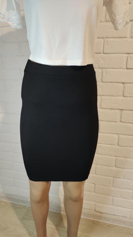 Классическая черная юбка, хорошо тянущаяся трикотажная, эластичная ткань фасон облегающий силуэт, талия на резинке, комфортная посадка, подчеркивает фигуру, выглядит сдержанно и стильно, идеально подойдет для офиса, деловых встреч или вечерних выходов. В идеальном состоянии, размер указан детский на 11 лет но пойдет на взрослого S или M. Замеры НПО талии 31-37 см., НПО бедер 38-48 см., длина 45 см.