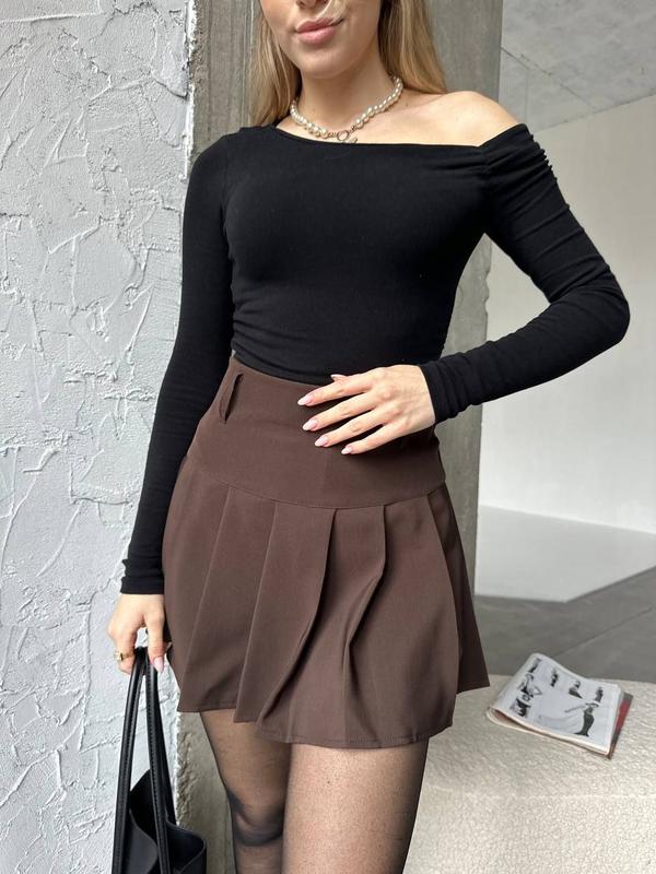 🔥НОВИНКА🔥 Коротка плисерированная юбка, застегивается на потайную молнию, выполнена из качественной костюмной ткани. 🤍Модель: 2429. Размер: 42, 44, 46. Тканина: костюмка. Цвет: черный, коричневый. ✔️Замеры: ▫️Обхват талии 42 - 66см 44 - 69см 46 - 72см ▫️Длина 38см.