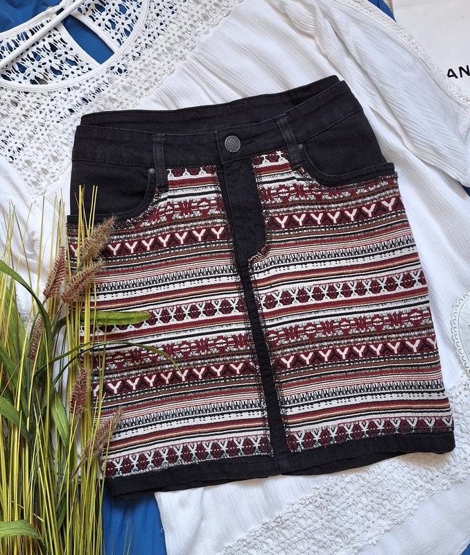 Джинсовая юбка esmara чёрная с вышивкой орнамент