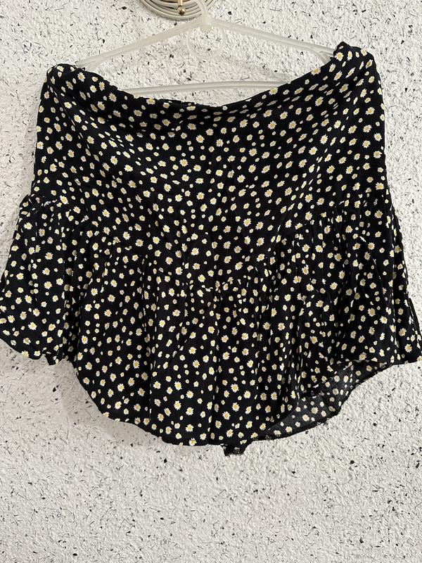 Черная в цветочный принт юбочка-обманка, снизу шортики
