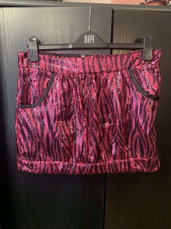Мини юбка с пайетками на подкладке, сзади молния. Длина 37 см, ПОТ-41 см, ПОБ -51 см. По бокам карманы