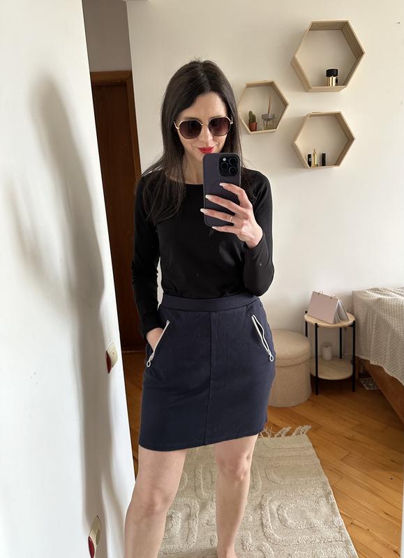 Гарна спідничка Лак0сте. Дуже зручна. Склад 67% віскоза,27% поліамід. Розмір 40. Можна і на М. Довжина 43см,Пот 38см,Поб 51.