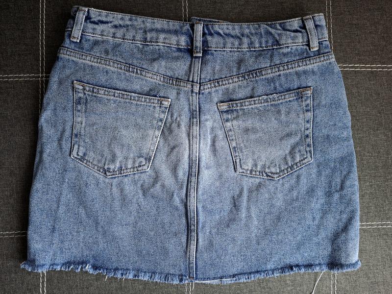 Джинсона спідниця з вишивкою по боках, на розмір М, в хорошому стані.