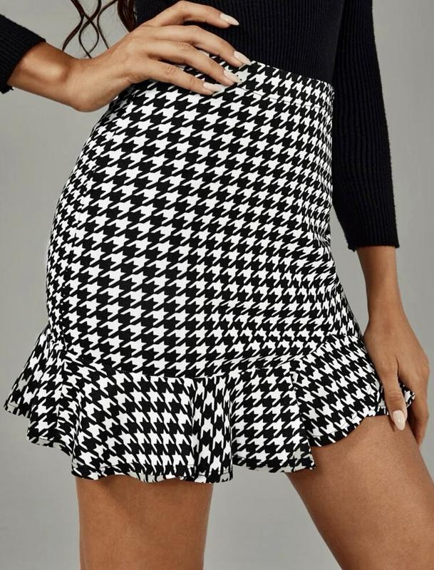 Юбка, новая элегантная мини юбка от shein, в принт гусиные лапки