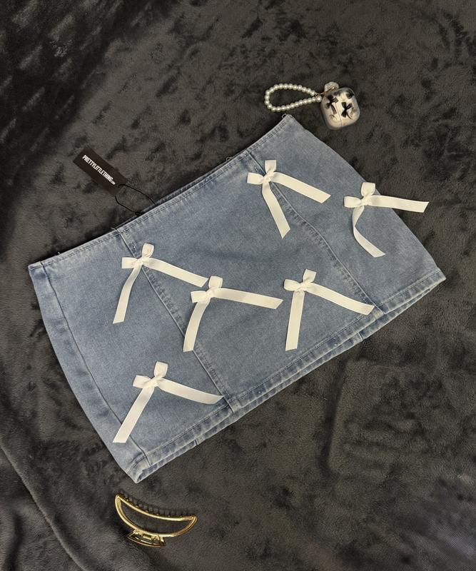 Міні-спідниця джинсова з бантиками😍 Розмір М (12)