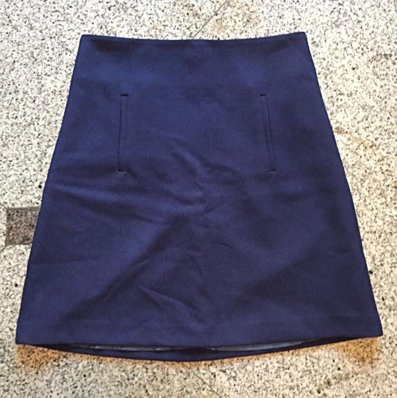 Юбка-мини А-силуэта из костюмной ткани и на подкладке, имеет два кармашка впереди и потайную застежку-молнию сзади. Замеры: ПОТ - 36 см Длина - 44 см
