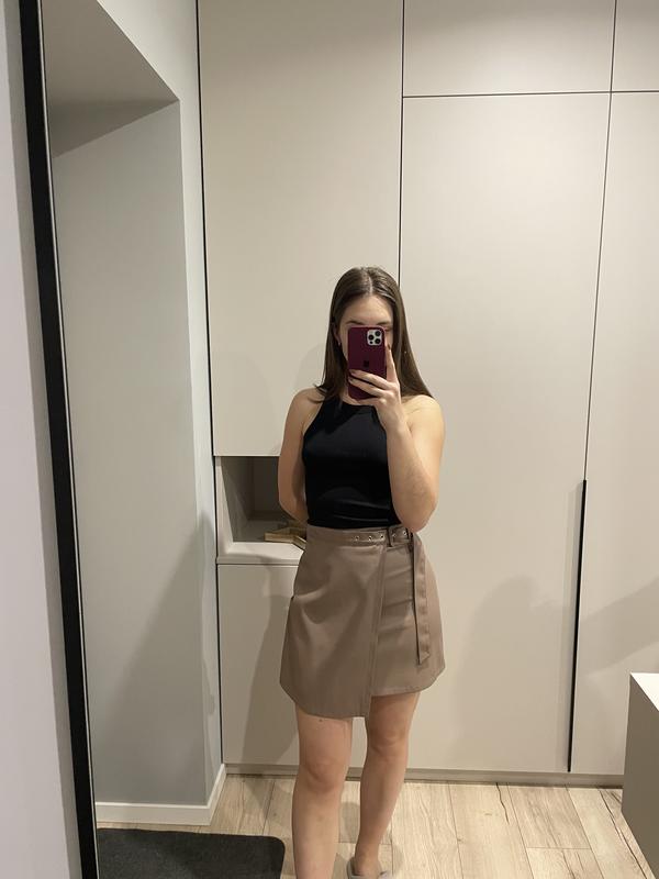 Спідниця з екошкіри, була куплена за 1200 і одягнена 1 раз. Стан нової речі. Розмір XS але на S також гарно сяде. Склад тканини: 97 % поліестер, 3% еластан. Довжина 42 см. Пів обхват талії 32 см, але матеріал тягнеться трохи
