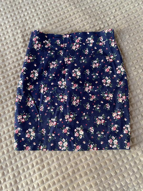 Юбка мини в цветочный принт Взади на замочке Размер М