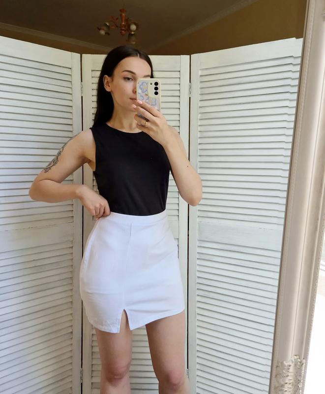 Белоснежная юбка с шортиками от Asos🤍 Размер 12/40/M, внизу идет с небольшим разрезом, материал тянется ✂️Замеры: длина изделия 40 см, бедра полуобхват 48-53 см, талия полуобхват 35-38 см ✅️Состояние новой вещи, без бумажной бирки