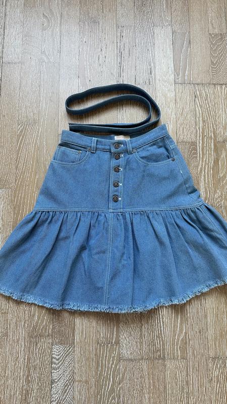 Спідниця джинсова українського бренду Putivtseva atelier, розмір S, на параметри 63-66 талія, бедра 92-96 см, завищена посадка, довжина 50 см, пояс 33, бедра 48 см, стан нової, легкий джинс, з фірмовою коробкою