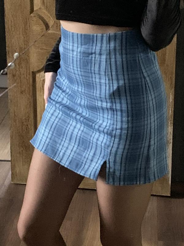 Голубая юбка в клетку Стан супер Идет с разрезами Размер s-m