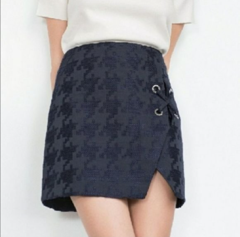жакеардовая мини юбка Zara с акцентными люверсами в размере М