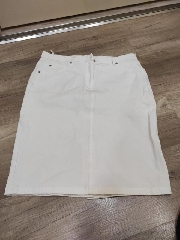 в идеальном состоянии стильная классная джинсовая белая юбка размер 46 вказано на фото 6 длина 60 от88-90 об110 тянется до 120