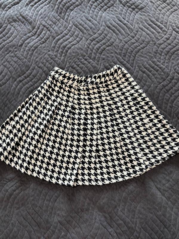 Мини юбка в складку с принтом гусиная лапка. Талия на резинке.