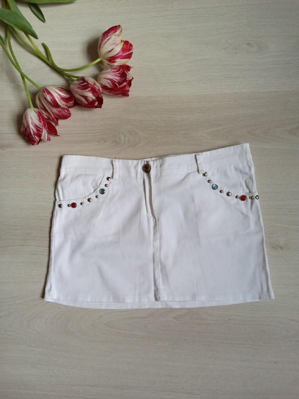 Белая катоновая юбка