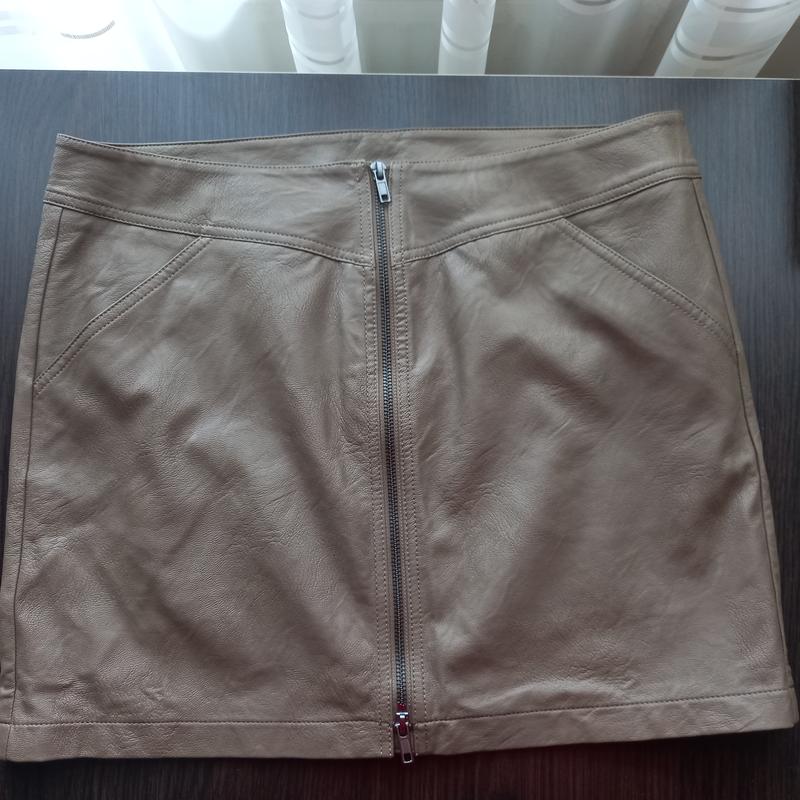 В наличии юбка ТМ BonPrix Материал - кожзам на тканевой подкладке Посередине молния. Є прихований гудзик (видно на фото). Состояние - новый Есть карманы. Размер EUR 42/XL/50 Замеры: ширина в талии - 43,5 см; ширина по низу 50 см, длина 40,5 см. Талия занижена.