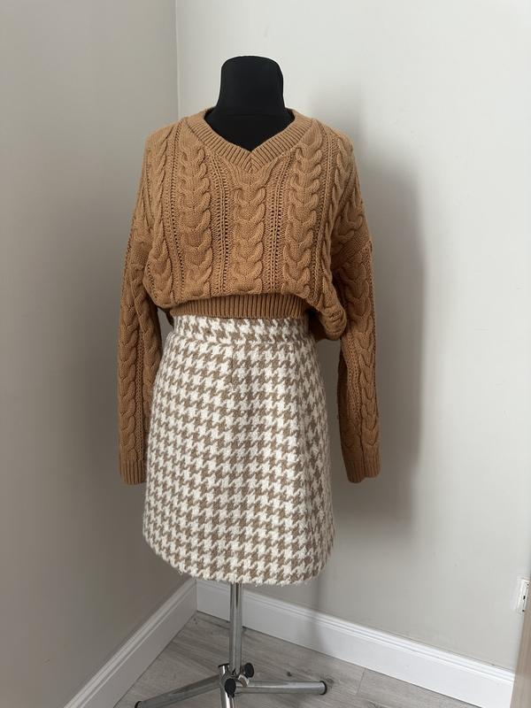 Твідова юбка, спідниця в принт гусяча лапка Пояс 72 см Півобхват стегон 51 см Довжина 43 Светрик є в продажу